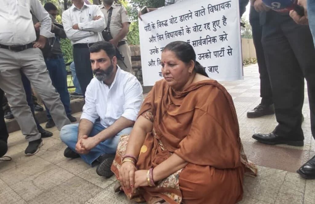 चंडीगढ़: हरियाणा के राज्यसभा चुनाव के बाद कांग्रेस पार्टी के भीतर सियासी घमासान तेज हो गया है। क्रॉस वोटिंग और वोट रद्द होने के विवाद ने पार्टी को अंदर से हिला दिया है। इसी कड़ी में सिरसा से विधायक गोकुल सेतिया और नांगल चौधरी से विधायक मंजू चौधरी बुधवार को सेक्टर-9 स्थित कांग्रेस कार्यालय के बाहर धरने पर बैठ गए।