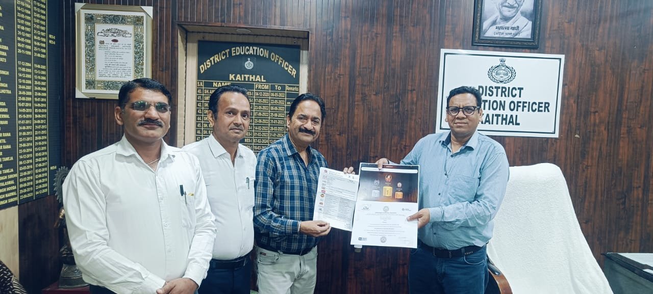कैथल। जिले के आरोही स्कूल ग्योंग में कार्यरत हिंदी प्राध्यापक डॉ. विजय चावला ने राष्ट्रीय स्तर पर उत्कृष्ट प्रदर्शन कर कैथल का नाम रोशन किया है। उनकी इस उपलब्धि पर जिला शिक्षा अधिकारी सुभाष कुमार ने उन्हें अपने कार्यालय में सम्मानित किया और प्रशंसा पत्र प्रदान किया।