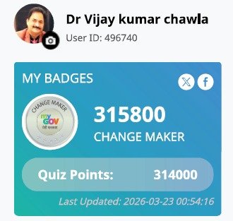 MyGov पर 103 क्विज़ में 3.15 लाख अंक, बने “चेंज मेकर”