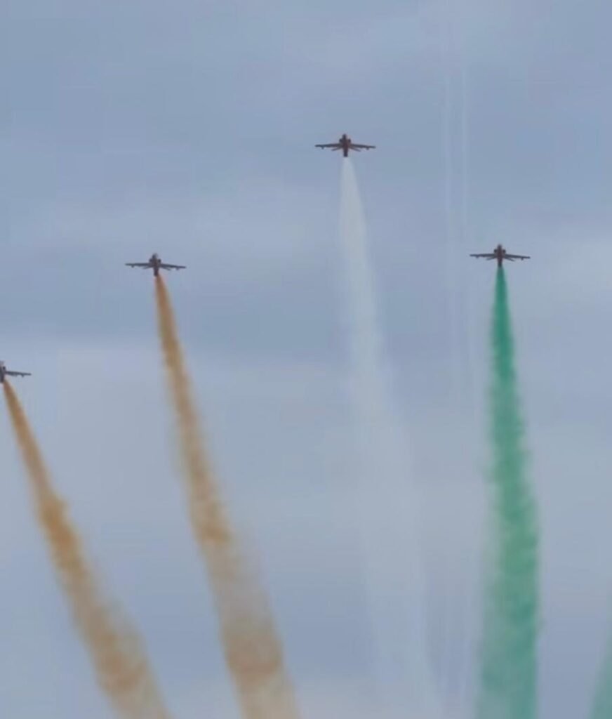 चंडीगढ़: सुखना लेक पर दो दिवसीय एयर शो की भव्य शुरुआत के साथ ही शहर में उत्साह का माहौल देखने को मिला। भारतीय वायुसेना की मशहूर सूर्यकिरण एरोबैटिक टीम ने आसमान में हैरतअंगेज करतब दिखाकर दर्शकों को रोमांचित कर दिया। फाइटर जेट्स ने नीले आकाश में डायमंड फॉर्मेशन और अंग्रेजी अक्षर ‘A’ बनाकर लोगों को मंत्रमुग्ध कर दिया।