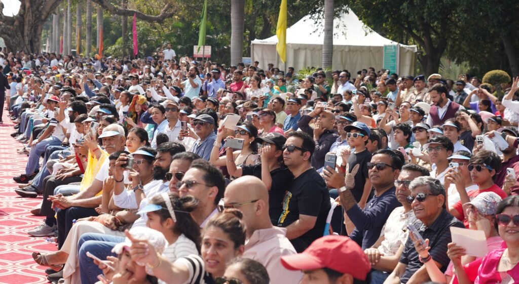 विशेष रूप से जब विमानों ने आकाश में तिरंगे के रंगों की धाराएं छोड़ीं, तो पूरा माहौल तालियों की गड़गड़ाहट से गूंज उठा। बच्चों, युवाओं और परिवारों सहित हजारों दर्शकों ने इस नजारे का भरपूर आनंद लिया।