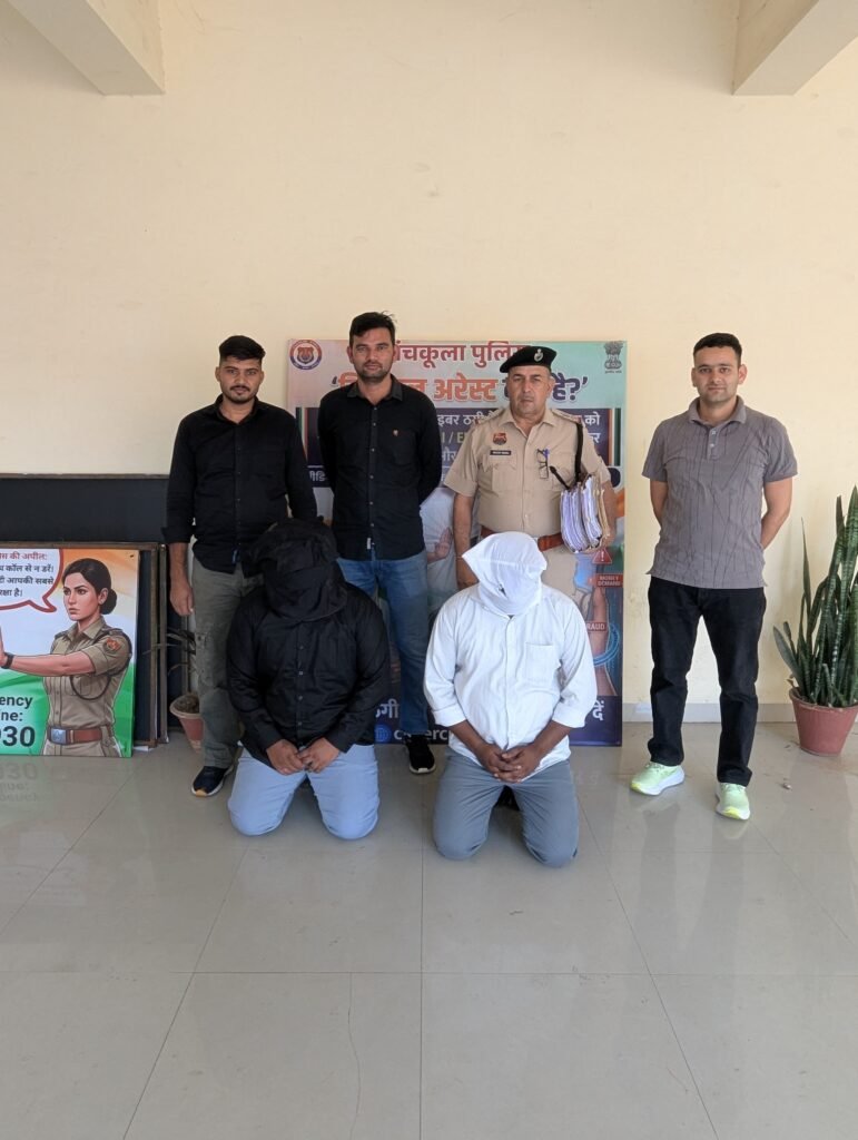 पंचकूला, 9 अप्रैल 2026। साइबर अपराध के खिलाफ सख्त कार्रवाई करते हुए पंचकूला पुलिस ने एक बड़े फ्रॉड मामले में अहम सफलता हासिल की है। शेयर मार्केट में निवेश पर दोगुना मुनाफा देने का लालच देकर 1 करोड़ 75 लाख रुपये की ठगी के मामले में साइबर क्राइम थाना पंचकूला की टीम ने गुजरात के अहमदाबाद से दो बैंक कर्मचारियों को गिरफ्तार किया है।