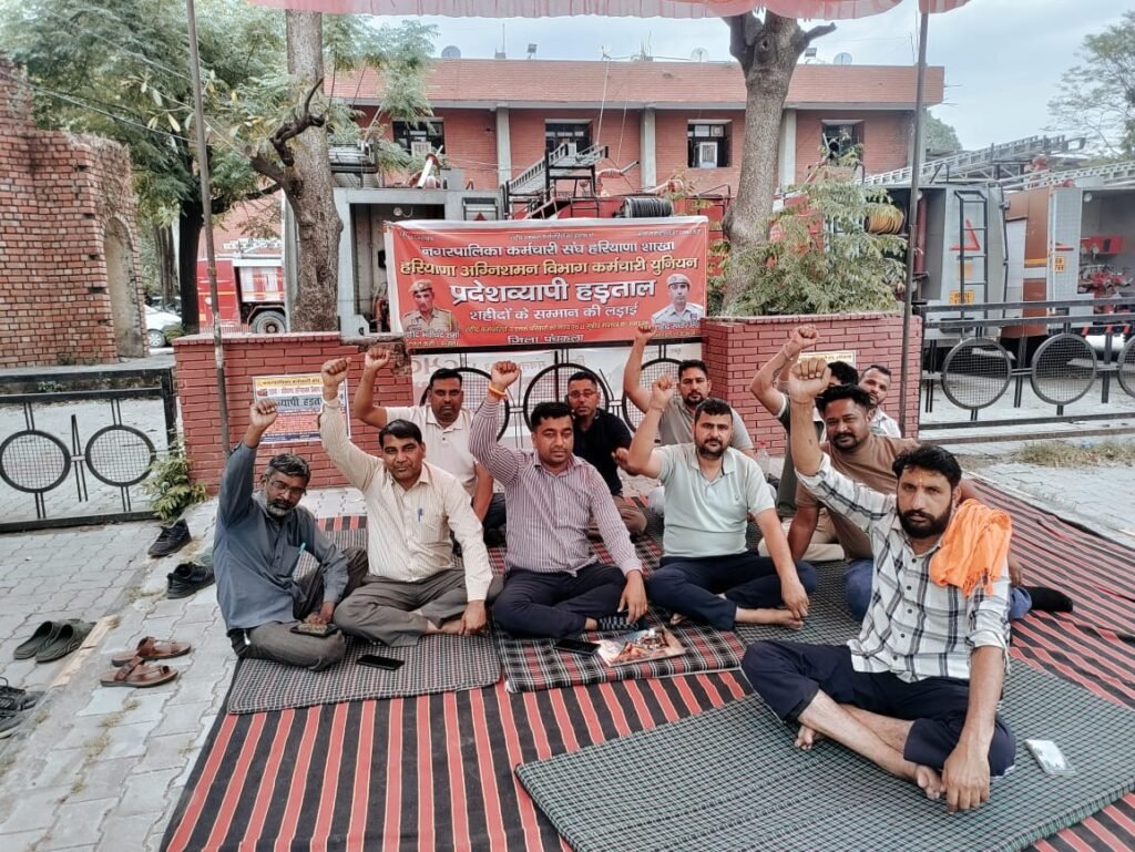 पंचकूला, 17 अप्रैल 2026: अग्निशमन विभाग कर्मचारी यूनियन, जो सर्व कर्मचारी संघ हरियाणा से संबंधित है, के आह्वान पर चल रही हड़ताल शुक्रवार को दसवें दिन भी जारी रही। इस दौरान पंचकूला के मुख्य दमकल केंद्र पर जिले भर के दमकल कर्मचारियों ने एकत्र होकर सरकार के खिलाफ जोरदार नारेबाजी की और अपनी मांगों को लेकर प्रदर्शन किया।