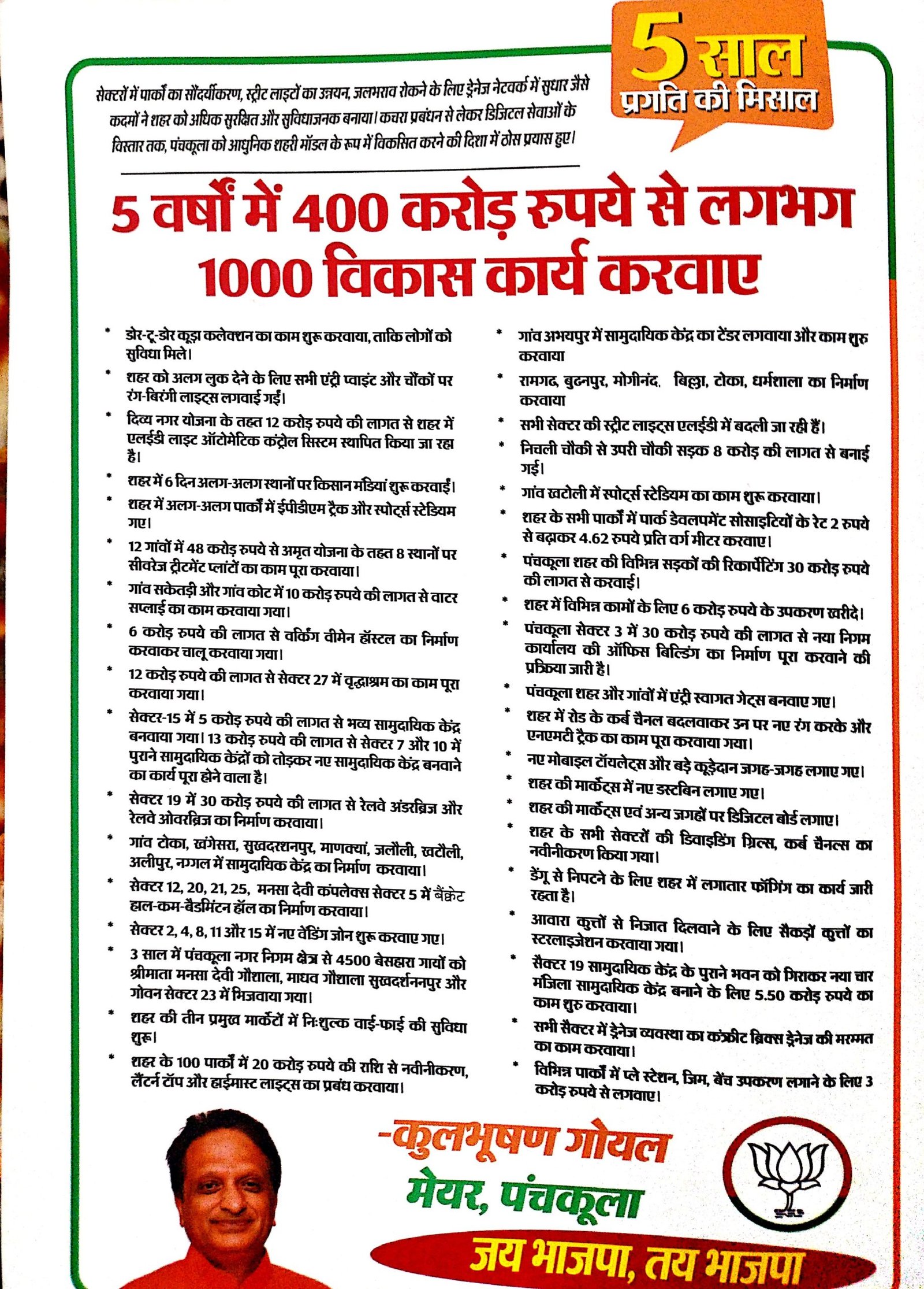 कुलभूषण गोयल के कार्यकाल में पंचकूला शहर ने कई क्षेत्रों में अभूतपूर्व विकास देखा: