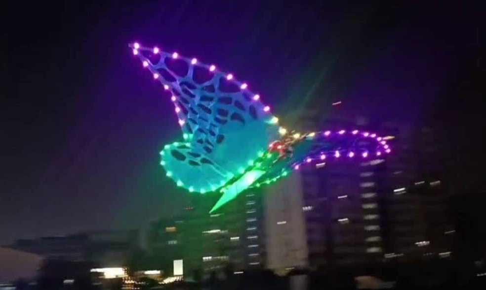 रात के समय एलईडी लाइटों से सजी पतंग, जो आसमान को रंगीन रोशनी से भर देती है