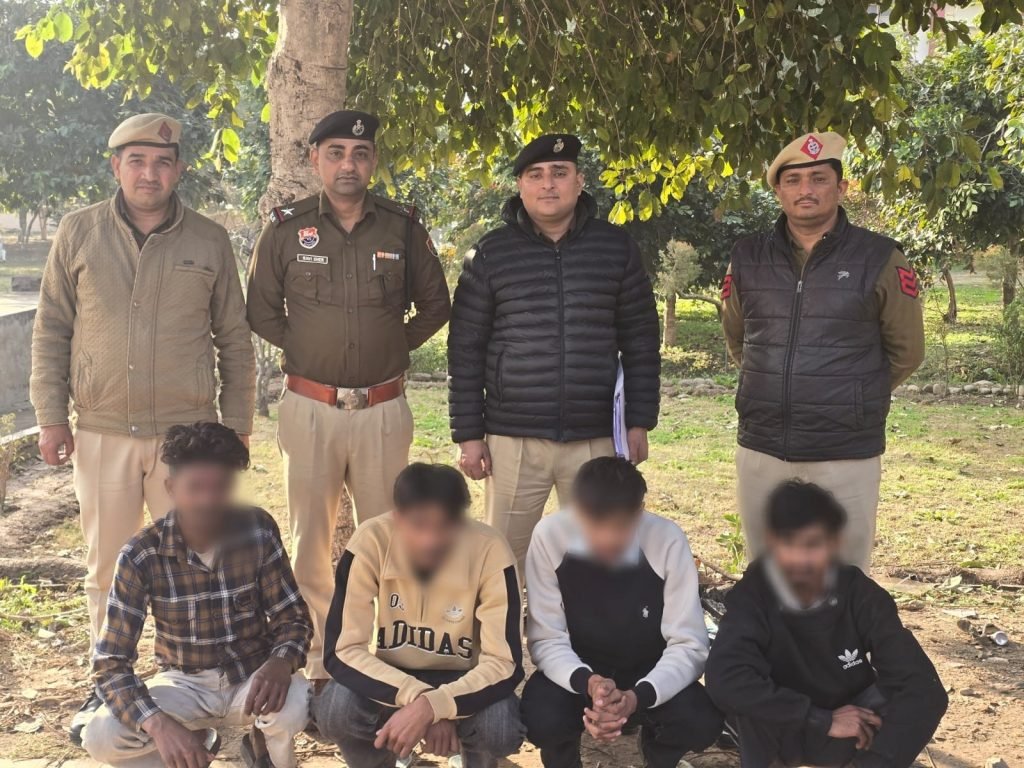 बरवाला चौकी इंचार्ज गुरपाल सिंह और जांच अधिकारी लवनीश के नेतृत्व में गठित विशेष टीम ने त्वरित कार्रवाई करते हुए गुप्त सूचना के आधार पर छापेमारी की और युवराज उर्फ अंकित, बबलप्रीत, खुशप्रीत और कर्ण को गिरफ्तार कर लिया। चारों आरोपी गांव भरेली के रहने वाले हैं।