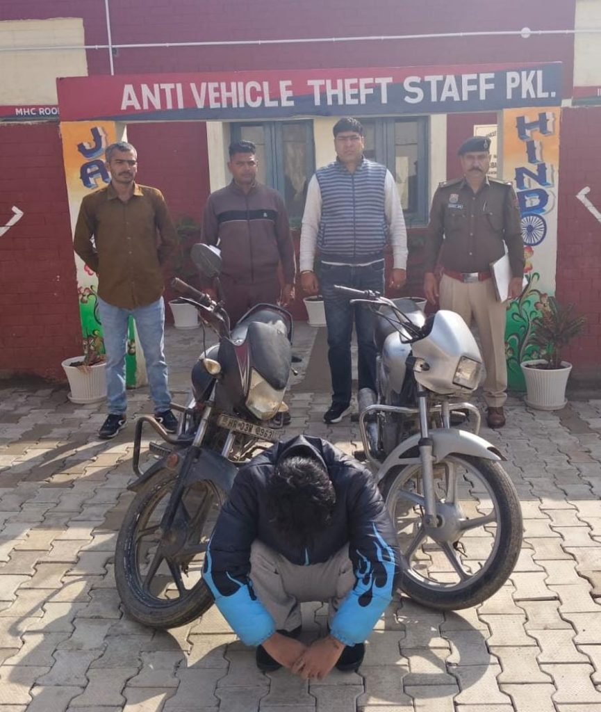 पंचकूला, 02 फरवरी 2026: पंचकूला पुलिस की एवीटी स्टाफ टीम ने मोटरसाइकिल चोरी के एक मामले में त्वरित कार्रवाई करते हुए आरोपी को गिरफ्तार कर उसके कब्जे से दो चोरीशुदा मोटरसाइकिल बरामद की हैं।