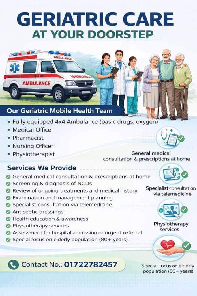 चंडीगढ़: अब 80 साल से अधिक उम्र के बुजुर्गों को गंभीर बीमारी या उम्र के कारण अस्पताल आने की जरूरत नहीं पड़ेगी। गवर्नमेंट मल्टी-स्पेशलिटी हॉस्पिटल, सेक्टर-16 ने हाल ही में ‘घर-घर जेरियाट्रिक केयर’ नामक मुफ्त मोबाइल स्वास्थ्य सेवा की शुरुआत की है। इसका उद्देश्य उन बुजुर्गों तक स्वास्थ्य सेवाएं पहुंचाना है, जो घर से बाहर नहीं जा पाते।