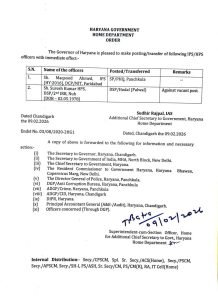 वहीं, सुरेश कुमार, एचपीएस (जन्मतिथि: 02 मई 1978), जो वर्तमान में डीएसपी/द्वितीय आईआरबी, नूंह के पद पर कार्यरत थे, उन्हें डीएसपी/होडल (जिला पलवल) के पद पर स्थानांतरित किया गया है। यह नियुक्ति रिक्त पद के विरुद्ध की गई है।