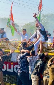 पंचकूला / चंडीगढ़, 17 फरवरी। सांसद दीपेन्द्र हुड्डा आज हरियाणा यूथ कांग्रेस द्वारा आयोजित HPSC दफ्तर घेराव में पहुंचे और हरियाणा की नौकरियों में हरियाणवी युवाओं की उपेक्षा, HPSC भर्तियों में धांधली प्रदेश में बढ़ती बेरोजगारी के खिलाफ युवाओं की आवाज बुलंद की। सेक्टर 5 में सभा के बाद HPSC दफ्तर जाते समय रास्ते में पुलिस ने बेरकेडिंग लगाकर रोका और भीड़ को तितर बितर करने के लिए वॉटर कैनन का प्रयोग किया। इसके बाद सांसद दीपेन्द्र हुड्डा, सांसद वरुण चौधरी, यूथ कांग्रेस के राष्ट्रीय अध्यक्ष, प्रदेश अध्यक्ष समेत सभी नेताओं को हिरासत में ले लिया। सांसद दीपेन्द्र हुड्डा ने कहा कि हरियाणा के युवा लावारिस नहीं हैं, हम युवाओं के साथ हैं और प्रदेश के युवाओं के हक के लिए हर लड़ाई लड़ेंगे। उन्होंने मांग करी कि HPSC चेयरमैन को तुरंत बर्खास्त कर किसी हरियाणवी को चेयरमैन नियुक्त किया जाए। HPSC को भंग करके तमाम भर्ती घोटालों की निष्पक्ष जांच कराकर दोषियों पर कार्रवाई की जाए और 35% न्यूनतम अंक क्राईटेरिया हटाकर HPSC के सारे खाली पदों का दोबारा से विज्ञापन किया जाए।