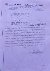 डीटीपी कार्यालय की ओर से मोरनी उप-तहसील के गांव उड़ियों निवासी प्रदीप मास्टर को नोटिस जारी किया गया है। नोटिस में कहा गया है कि संबंधित व्यक्ति ने बिना किसी वैधानिक अनुमति के निर्माण कर भूमि/भवन का उपयोग गेस्ट हाउस के रूप में किया, जो कि नियमों का सीधा उल्लंघन है।