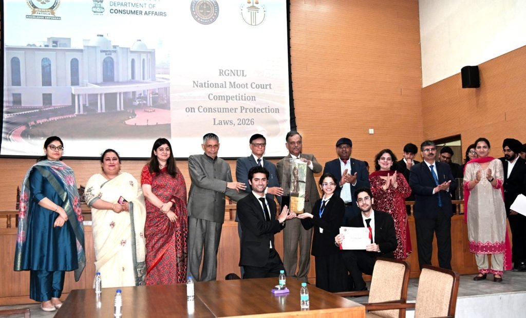 पटियाला। Rajiv Gandhi National University of Law (आरजीएनयूएल), पंजाब द्वारा Ministry of Consumer Affairs, Food and Public Distribution, भारत सरकार के सहयोग से 20-21 फरवरी 2026 को “राष्ट्रीय मूट कोर्ट प्रतियोगिता – उपभोक्ता संरक्षण कानून” का आयोजन किया गया। इस प्रतियोगिता में देशभर के 42 विधि विश्वविद्यालयों की टीमों ने भाग लेकर उत्साहपूर्वक अपनी कानूनी प्रतिभा का प्रदर्शन किया।