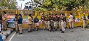 मार्च जैसे ही कांग्रेस भवन की ओर बढ़ा, पुलिस प्रशासन ने आकाशवाणी केंद्र के पास बैरिकेड लगाकर प्रदर्शनकारियों को रोक दिया। बैरिकेडिंग के चलते महिला मोर्चा की कार्यकर्ताओं को वहीं रोक दिया गया, जिसके बाद उन्होंने मौके पर ही धरना देते हुए कांग्रेस के खिलाफ नारेबाजी की। क्षेत्र में किसी भी अप्रिय स्थिति से निपटने के लिए भारी पुलिस बल तैनात रहा।