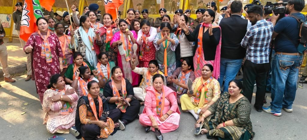 चंडीगढ़। ए आई समिट के दौरान कथित नग्नता प्रदर्शन को लेकर भारतीय जनता पार्टी चंडीगढ़ प्रदेश महिला मोर्चा ने कांग्रेस के खिलाफ जोरदार रोष मार्च निकाला। महिला मोर्चा की अध्यक्षा हीरा नेगी के नेतृत्व में सैकड़ों कार्यकर्ताओं ने सेक्टर-33 स्थित भाजपा कार्यालय ‘कमलम’ से मार्च शुरू कर सेक्टर-35 स्थित कांग्रेस भवन की ओर कूच किया।