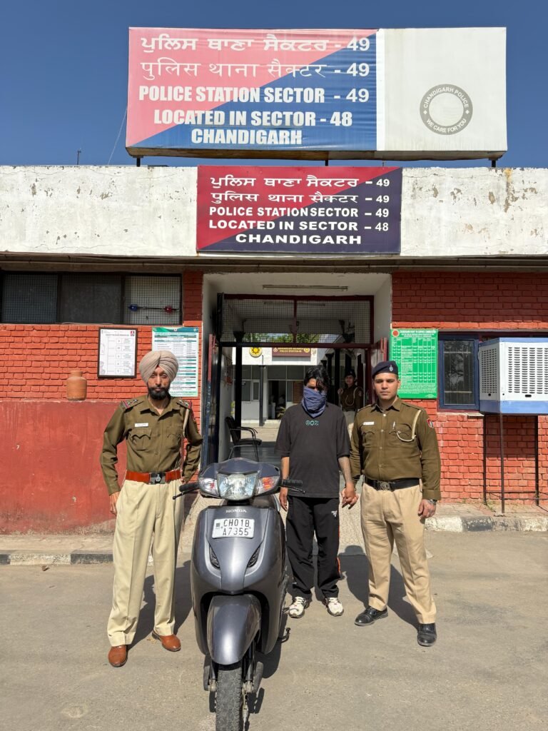 चंडीगढ़, 3 मार्च 2026। मोटर वाहन चोरों के खिलाफ चलाए जा रहे विशेष अभियान के तहत चंडीगढ़ पुलिस को बड़ी सफलता हाथ लगी है। सेक्टर-49 थाना पुलिस ने एक मोटर वाहन चोरी के मामले में आरोपी को गिरफ्तार कर चोरी की गई ग्रे रंग की होंडा एक्टिवा बरामद कर ली है।