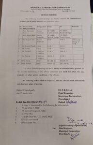 चंडीगढ़। नगर निगम चंडीगढ़ में सामने आए एफडी घोटाले के बाद प्रशासन ने सख्ती शुरू कर दी है। लंबे समय से एक ही सीट पर जमे कर्मचारियों को हटाने की प्रक्रिया के तहत मंगलवार को इंजीनियरिंग विंग में कई कर्मचारियों के तबादले कर दिए गए।