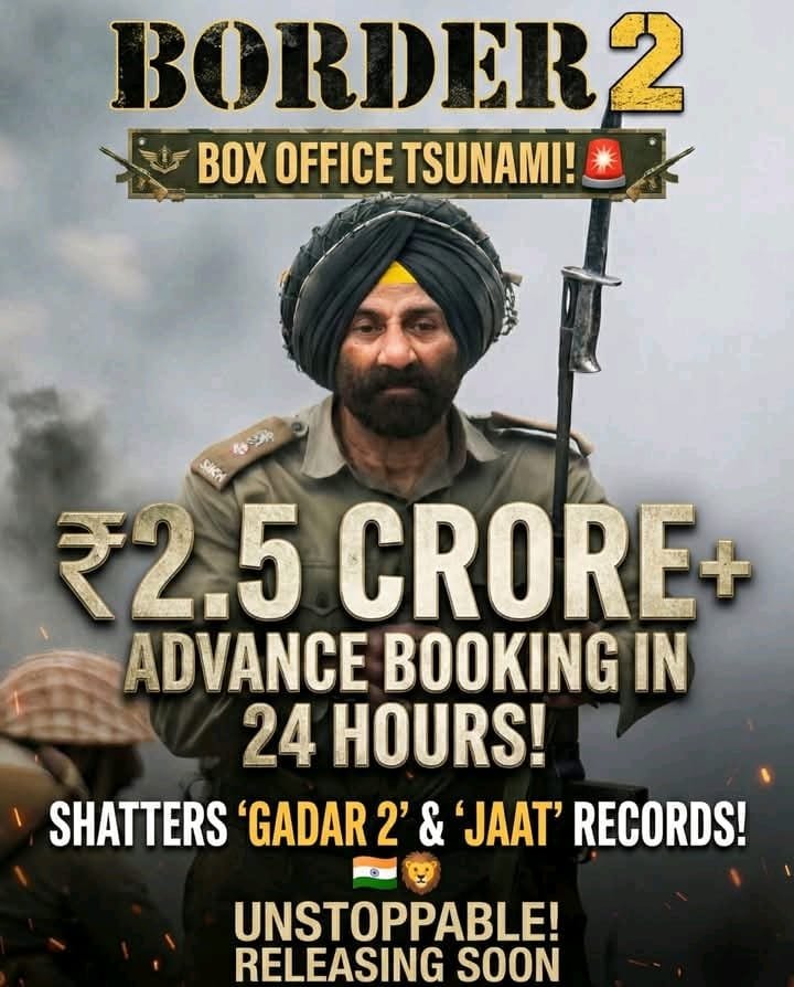 🎬 रिलीज से पहले बॉर्डर 2 का बॉक्स ऑफिस पर धमाका, एडवांस बुकिंग में 7.25 करोड़ की कमाई