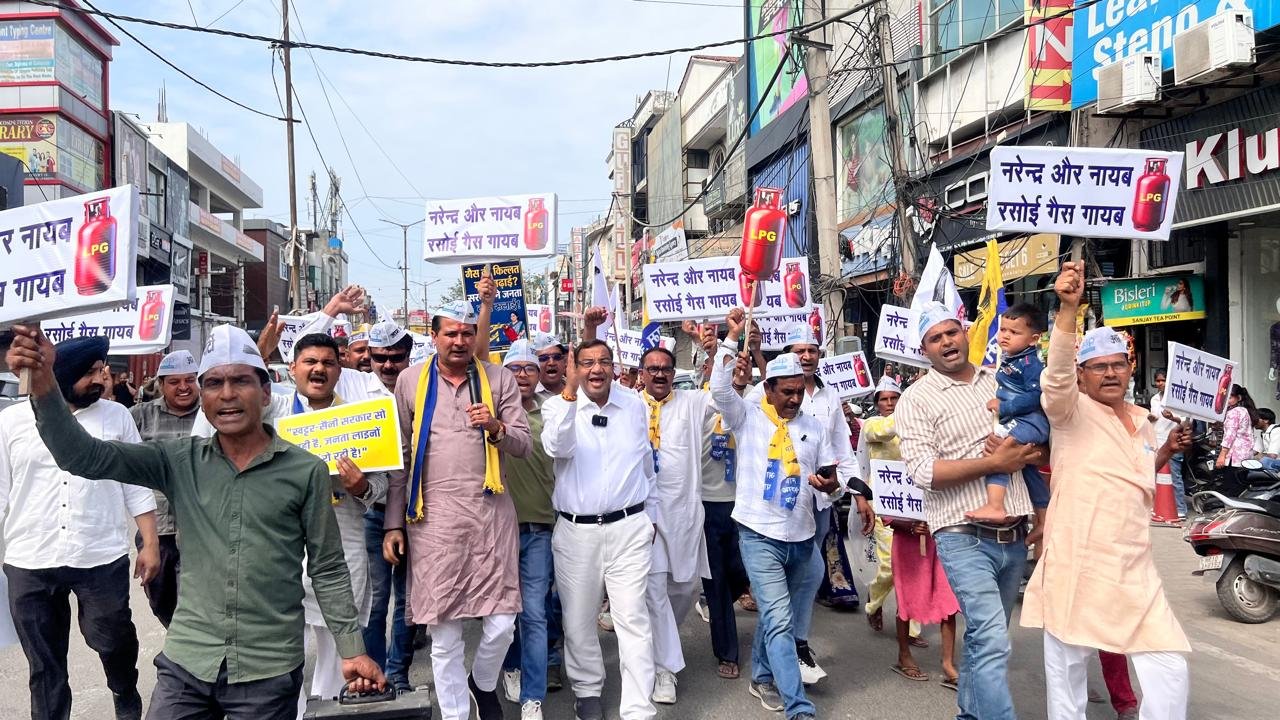 हरियाणा में एलपीजी गैस किल्लत पर आम आदमी पार्टी का जोरदार विरोध प्रदर्शन