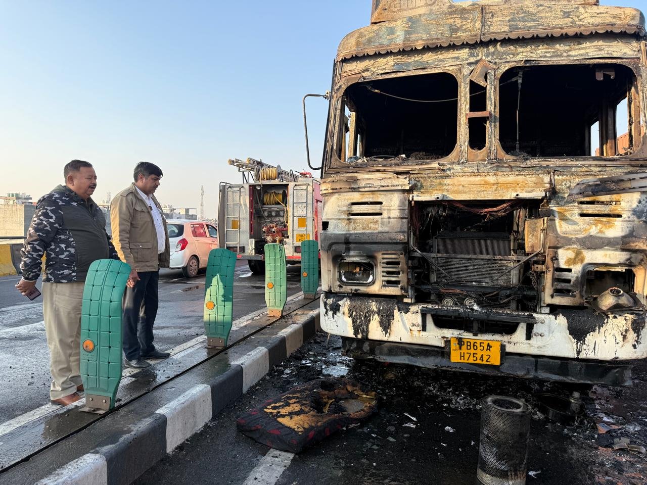 जीरकपुर फ्लाईओवर पर चलते ट्रक में लगी भीषण आग, चंडीगढ़–डेराबस्सी रोड पर घंटों जाम
