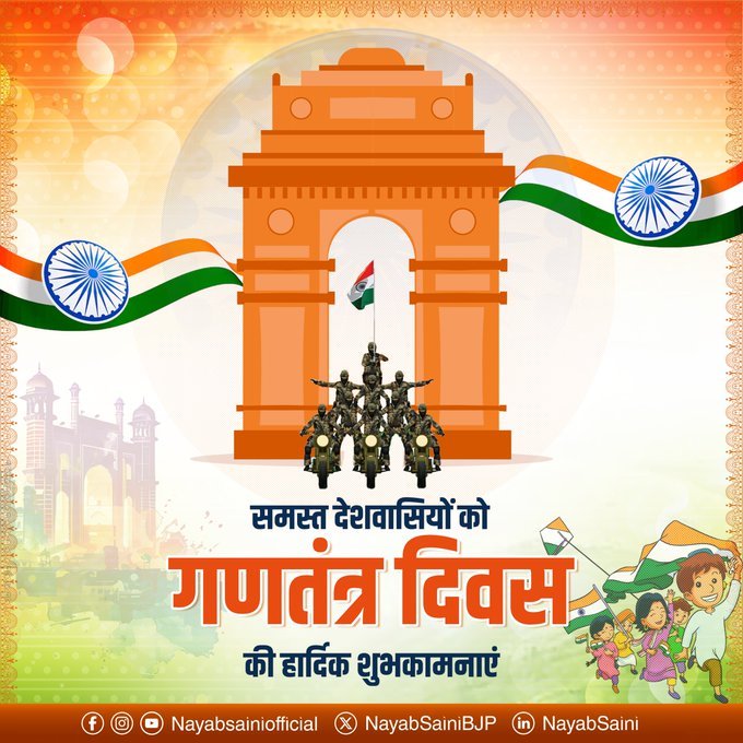 77वां गणतंत्र दिवस: सीएम नायब सिंह सैनी समेत नेताओं ने देशवासियों को दी शुभकामनाएं